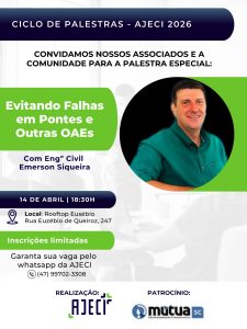 Casa cheia marca abertura do Ciclo de Palestras AJECI 2026 com palestra sobre Gestão do Tempo em Joinville 12 março, 2026 Leia mais