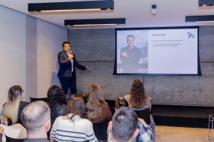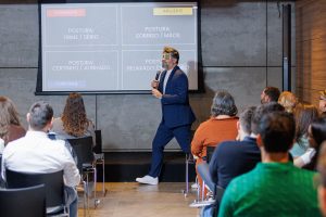 Logo na chegada, o público foi recepcionado pela Diretoria da AJECI com um delicioso café, num clima de acolhimento e reencontro. A palestra iniciou pontualmente, com a excelente apresentação do especialista Robson Reis, que compartilhou conteúdos práticos e inspiradores sobre perfil comportamental e estratégias de vendas.